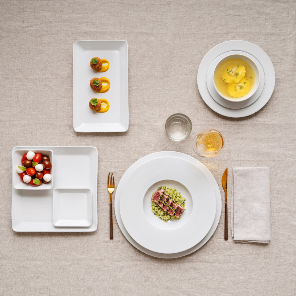 Pensée pour sublimer vos repas au quotidien comme lors de vos plus belles réceptions, la collection Raio allie praticité et raffinement. Empilable et robuste, elle se distingue par la qualité de ses matériaux et par son design intemporel qui s’adapte à toutes les tables. Subtile et élégante, elle apporte une touche d’harmonie à chaque repas, pour faire de chaque moment un véritable plaisir de partager.