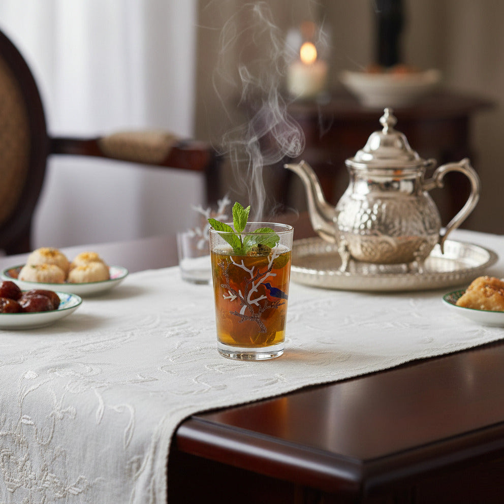Une élégante simplicité pour ces verres à thé transparents décorés d’un superbe motif d'oiseaux.