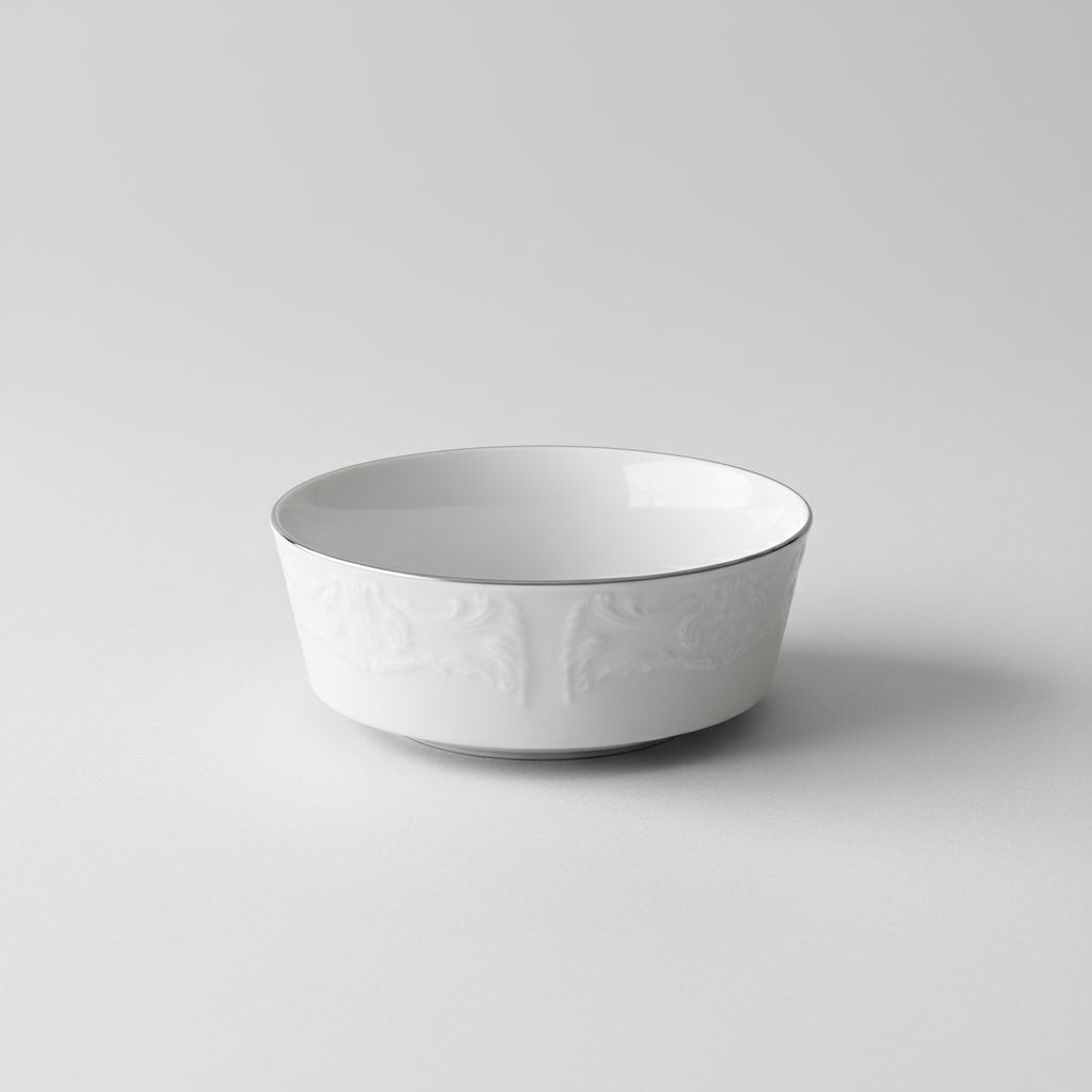 Fabriqué à partir de pâte fine, reconnue pour sa qualité exceptionnelle et son éclat blanc pur, le service Vendange filet platine est un ajout intemporel à toute table. Chaque assiette est délicatement soulignée d’un filet de platine, apportant une touche d’élégance discrète et luxueuse à l’ensemble.